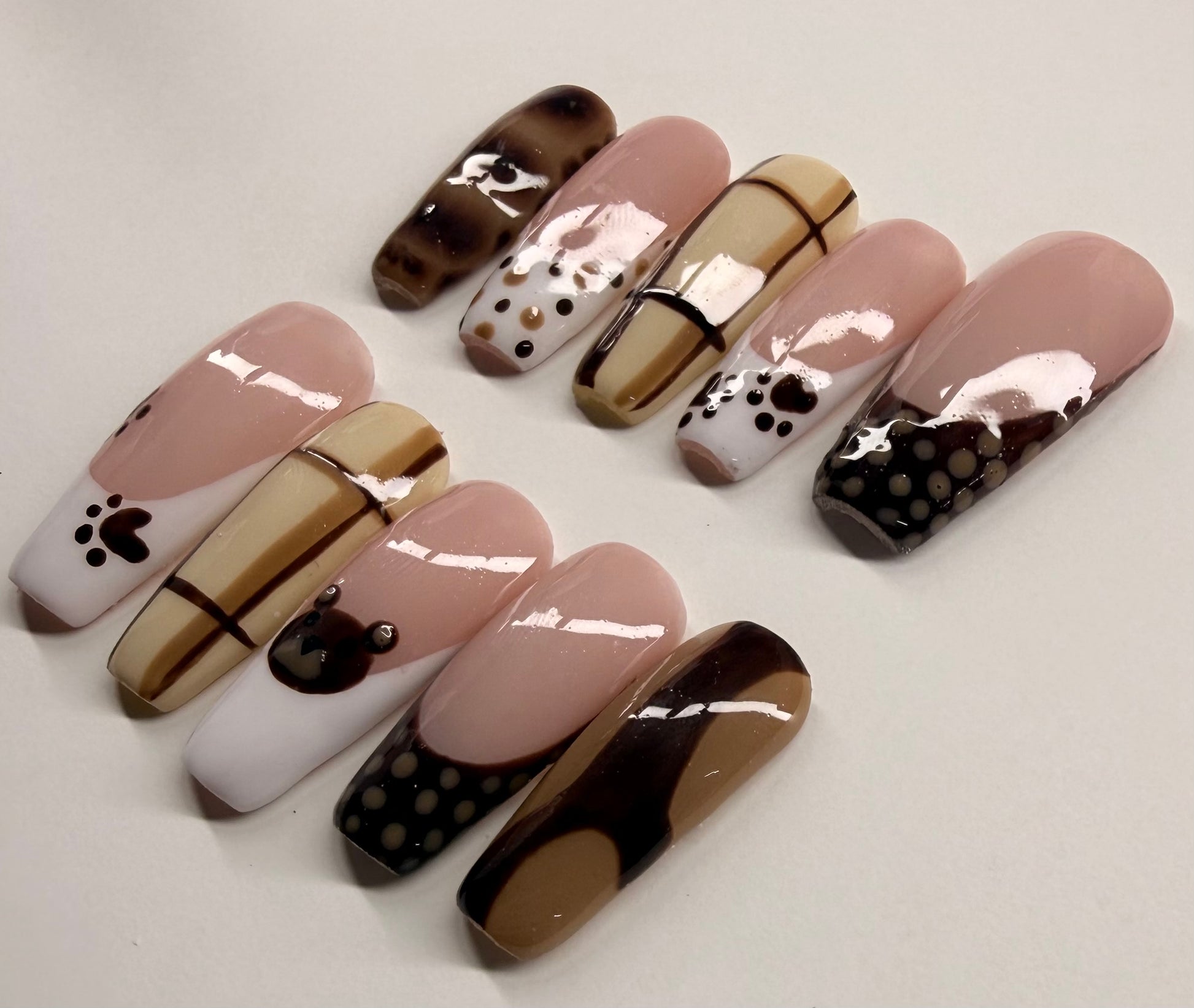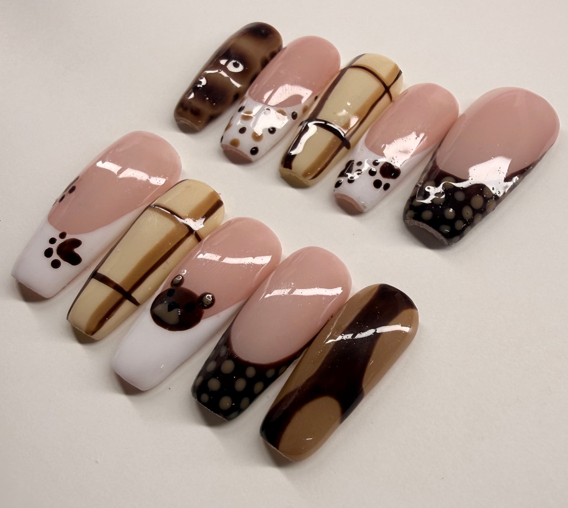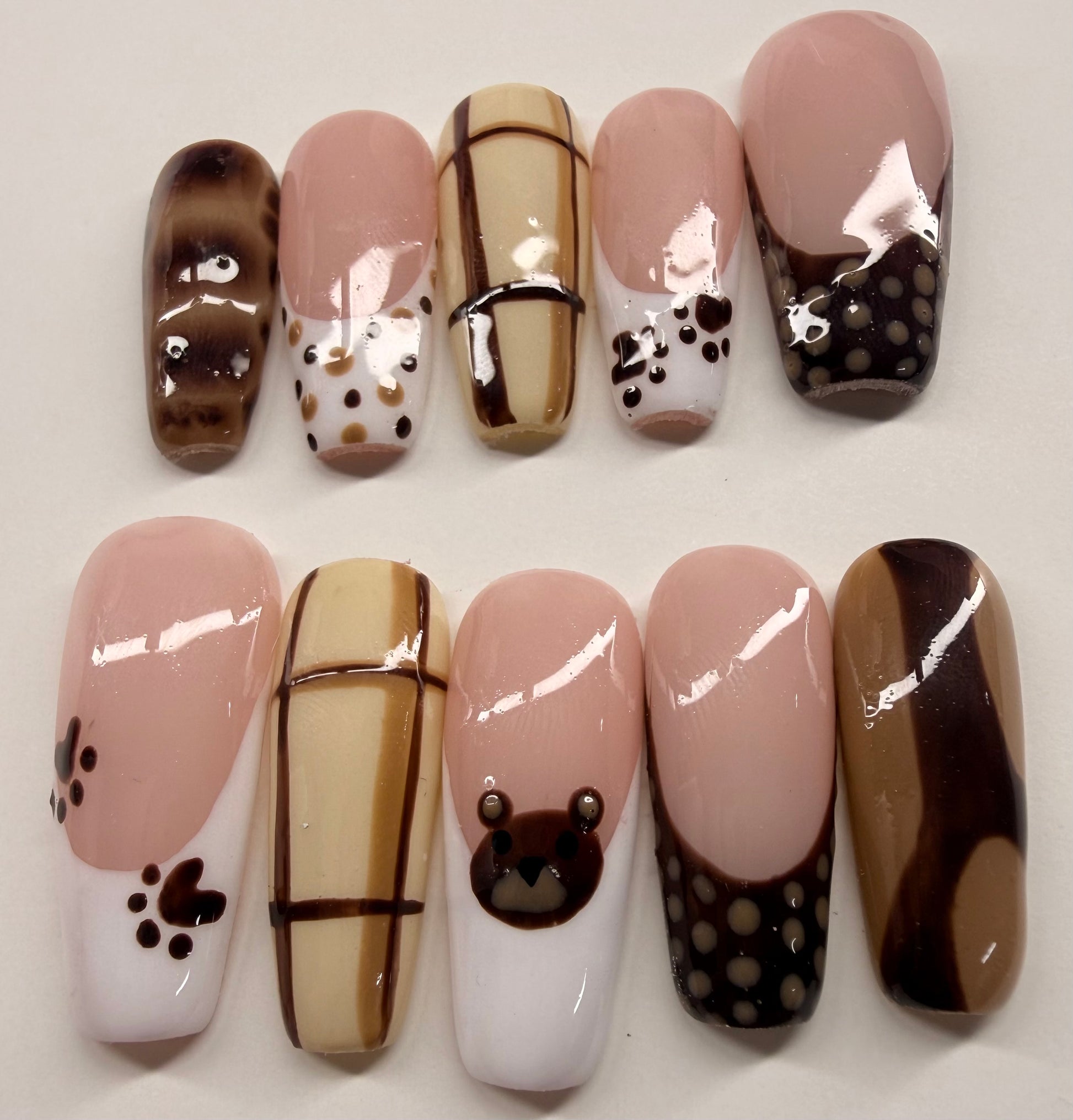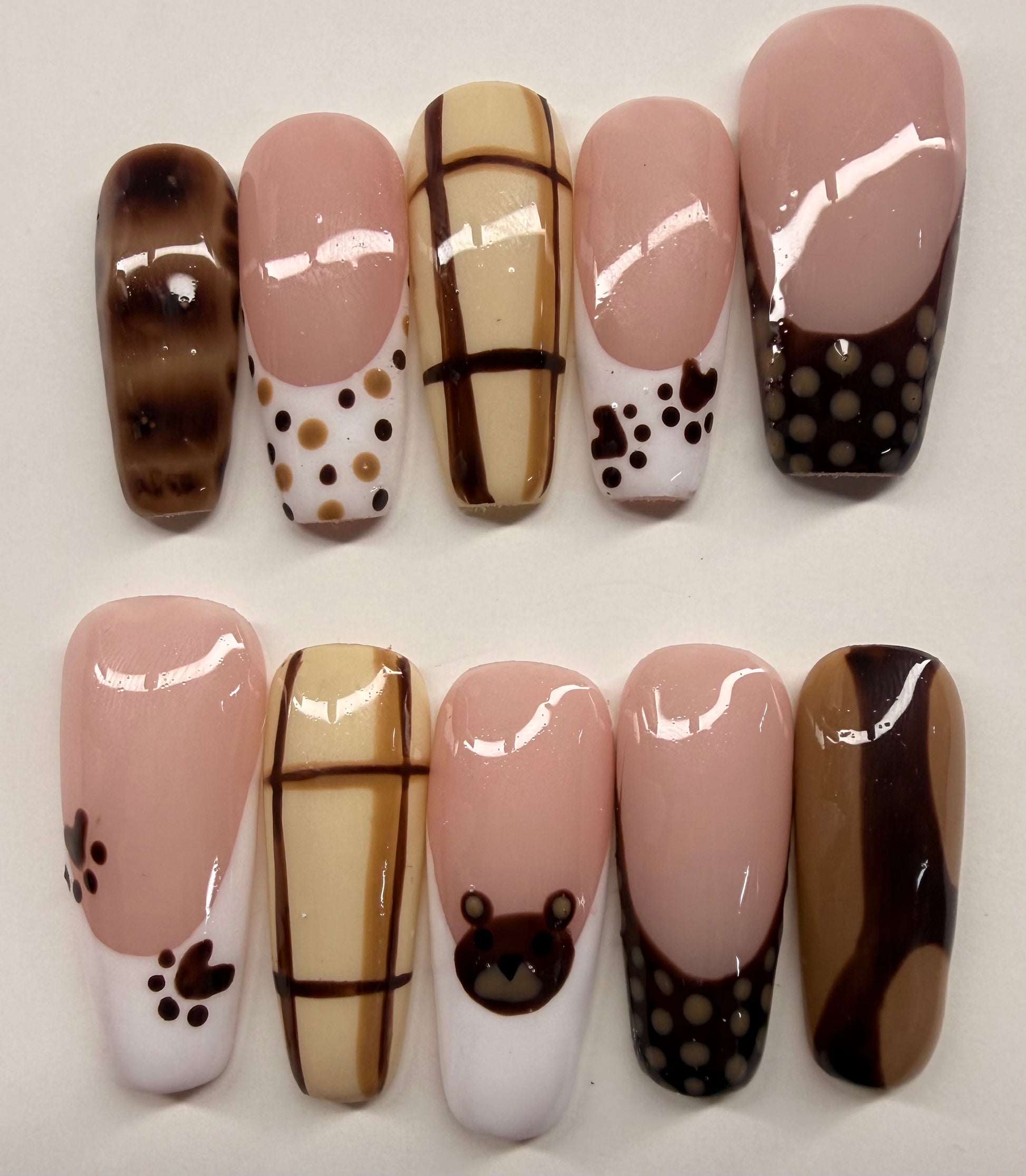 Meet Bear Latte, the perfect neutral set for anyone who loves a soft, warm, and classy vibe. Shown in a long coffin shape, this set blends cozy brown tones with a smooth, latte-inspired finish that’s perfect for everyday wear or a subtle glam look.